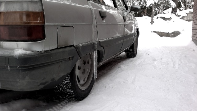 6.12.2011 J'ai mis une annonce pour acheter un train arrière sur les forums Renaults finnois, et après quelques jours j'ai était contacté par quelqu'un qui voulait vendre, à 20e! Donc le jour de l'independance de la Finlande, j'ai fait 200km et j'ai trouvé quelques autres pieces qui m'ont interessé: