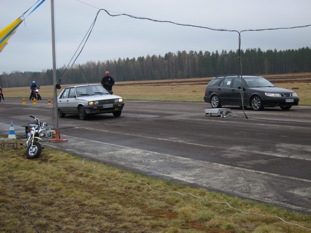 5.5.2012 Je participe au "Kiihdytyspäivät" de notre club, qui veut dire Jour de l'acceleration, c.a.d. on loue une piste d'aeroport et un team pour prendre les mesurements de 1/8 mile. C'est devenu un des jours les plus participés de notre club, et on participe avec la voiture qu'on veut, donc moi vu que la turbo n'est pas prete, avec la TXE :)